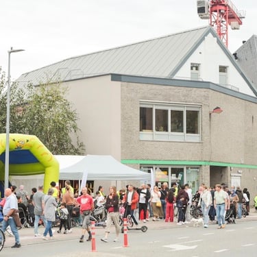 Het springkasteel zorgde voor blije kindergezichten, terwijl de geur van de barbecue en de tafels vol heerlijke desserts mensen samenbracht rond het beste wat een buurt kan bieden: warm contact en goed gezelschap.