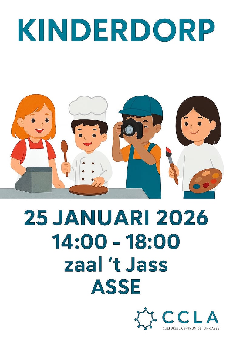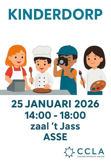 Ook dit jaar opent ons Kinderdorp opnieuw zijn deuren. Ditmaal veranderen we op 25 januari 2026 zaal ’t Jass in Asse voor één namiddag in een levendig mini-ondernemersdorp, volledig gerund door… kinderen zelf!
